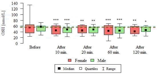 | Reduced Glutathione GSH [nmol/L] | ||||||||||