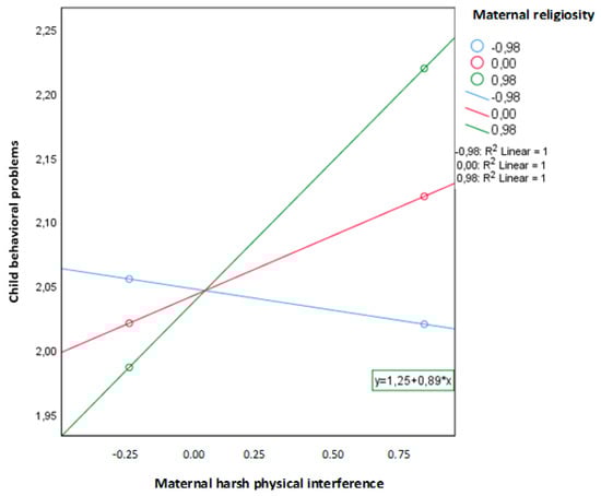 Moderating effect of maternal religiosity for the relation between maternal harsh physical parenting and child behavioral problems.