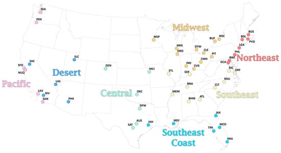 Hourly values of 2-m temperature, 2-m dew point, and 10-m wind speed (from u- and v-wind components) were obtained from the National Centers for Environmental Information NCEI) for the most representative airport for each of the 51 metropolitan areas (Table 1; Figure 1) for the period 1975–2010. To improve completeness, linear interpolation was performed to fill in single missing hourly values of each of the three variables.