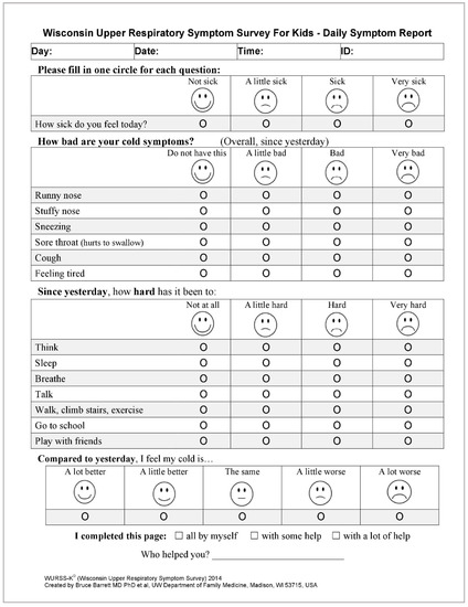 Wisconsin Upper Respiratory System Survey for Kids (WURSS-K)—questionnaire for daily assessment of the symptoms of URIs [35].