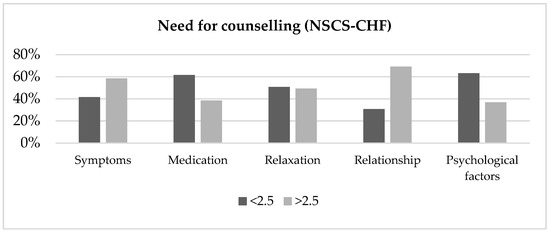 Furthermore, the Needs for Counselling scale in HF (NSCS-CHF) was administered to investigate the need for information regarding sexual activity and the preferred methods for delivery of this information [32]. The NSCS-HF consists of two domains. The first domain concerning content, includes five sub-domains: ‘symptoms’ (four items), ‘medication and information’ (four items), ‘relaxation’ (six items), ‘relationship’ (two items), and ‘psychological factors’ (two items). The questions in each domain were answered with a four-point Likert scale ranging from 1 (totally unimportant) to 4 (very important). An average score was calculated ranging from 1 to 4, with an average of 2.5 or more indicating an important need for counseling [32]. The second domain concerning conditions of delivery had three multiple-choice questions with respect to mode of delivery, and a frequency ranking was determined [32].
