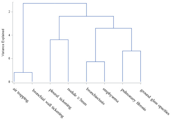 Chest CT abnormalities in WTC-exposed firefighters. The dendrogram demonstrates clustering of abnormalities on chest CTs.