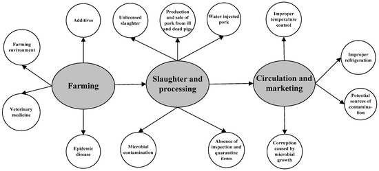 Specific safety risks in the major processes of the pork supply chain.