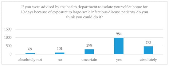 | SI | “If you were advised by the health department to isolate yourself at home for 10 days because of exposure to large-scale infectious disease patients, do you think you could do it?” | (1) Absolutely not, (2) No, (3) Uncertain, (4) Yes, (5) Absolutely |