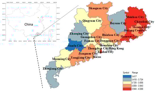 | Variables | Pearl River Delta | Eastern Guangdong | Western Guangdong | Northern Guangdong |