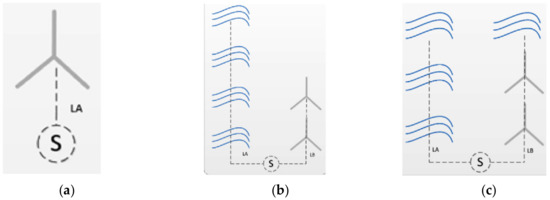 Configuration of the farm inputs [35]: one renewable energy (a), two renewable energies and independent arrays (b), two renewable energies and peripherally distributed arrays (c), two renewable energies and uniformly distributed arrays (d), and two renewable energies and non-uniformly distributed arrays (e).