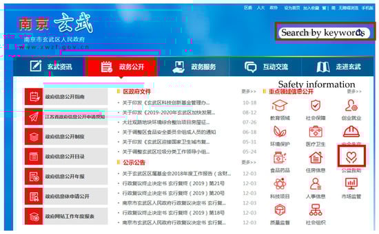 The interface of the government website to illustrate the searching process.