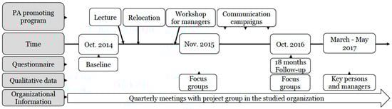 Wahlström, V.; Fjellman-Wiklund, A.; Harder, M.; Slunga Järvholm, L.; Eskilsson, T. Implementing a Physical Activity Promoting Program in a Flex-Office: A Process Evaluation with a Mixed Methods Design. Int. J. Environ. Res. Public Health 2020, 17, 23. https://doi.org/10.3390/ijerph17010023