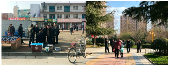 - Sun, Z.; Bell, S.; Scott, I.; Qian, J. Everyday use of urban street spaces: The spatio-temporal relations between pedestrians and street vendors: A case study in Yuncheng, China. Landsc. Res. 2019. [Google Scholar] [CrossRef]
