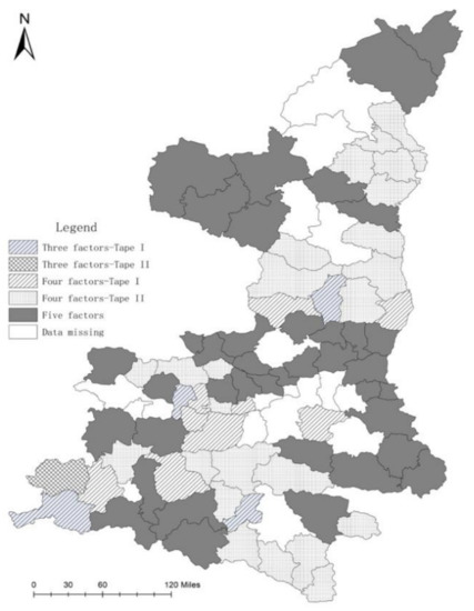 44]. In terms of garbage treatment, 7732 administrative villages collecting garbage, accounting for 28.6% of the total number of administrative villages in Shaanxi, of which only 2495 administrative villages were treated, accounting for 9.24% of the total number of administrative villages in Shaanxi, far lower than the national average level. The main treatment method was to carry out simple treatment, which is a single landfill [