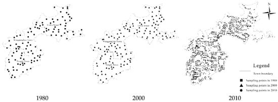 In order to assure the continuity and comparability of soil sampling, the quantity of sample stationing and point location are selected according to pattern spot of cultivated land, cropping system, crop variety and yield level. Soil data and sample distribution in 1980 are obtained from the Second National Soil Survey which was conducted in May-June with a total of 119 sample points and a scale of soil map at 1:50,000. The soil data in 2000 were collected by our research team in May–June based on the points in 1980 but with an increase of sample size to 141. Similarly, the soil data in 2010 were collected by our research team during May–June based on the points in 2000 with a further expansion of sample size in cultivated-land-concentrating area to 1437. The use of the dataset during multiple periods can also be found in other studies of soil properties [