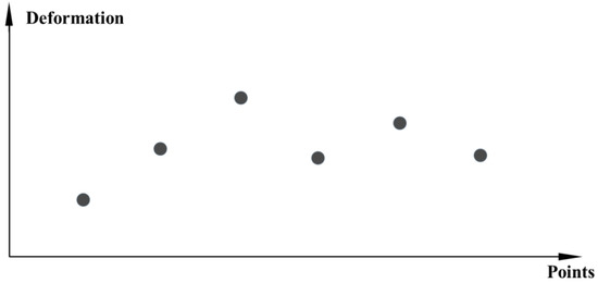 where represents the number of measurement points close to measurement point (a certain critical distance can be set to judge the proximity between different points); represents the deformation series of measurement points close to ; represents the correlation function between and ; represents the translation term of measurement point.