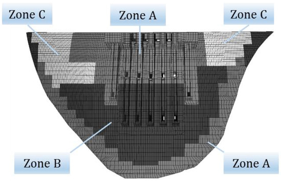 Modulus of elasticity for main zones of Jinping-I dam.
