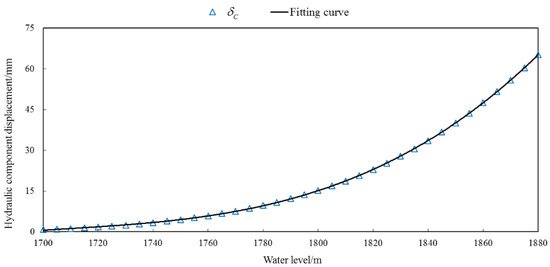 Fitting curve between hydraulic component displacement calculated by FEM of PL13-2 and water level.