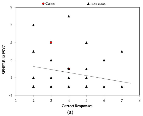Spearman’s Rho correlations showed that for the SPHERE-12 Total (r = 0.35), SPHERE-12 PSYCH (r = 0.32), and depression cases (r = 0.40), there were positive correlations between correct responses for neutral faces and increased symptomology; higher scores predicted more accurate neutral face identifications. There was no association between K10 scores and processing of neutral faces.