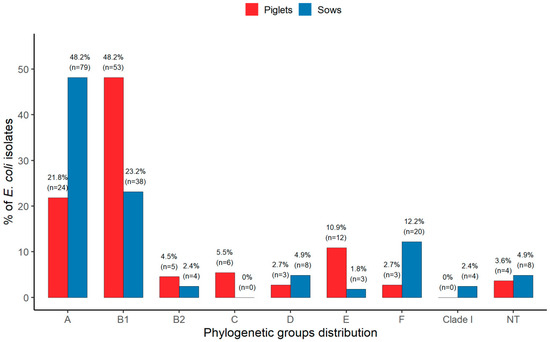 The following are available online at https://www.mdpi.com/1660-4601/17/1/366/s1. Table S1: Comparison of phylogenetic structure of E. coli isolates from piglets and sows using previous and revised Clermont phylogenetic typing method.