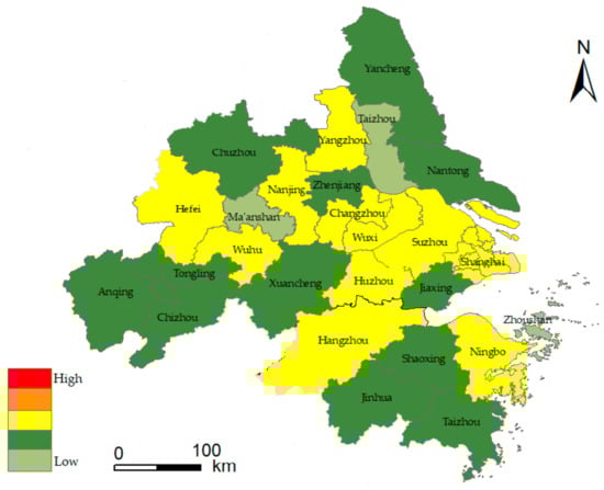 Flood risk diagram of YRD urban agglomeration in 2016.
