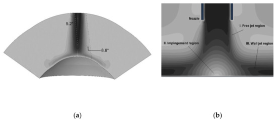 - Donaldson, C.; Snedeker, R. A study of free jet impingement. Part 1. Mean properties of free and impinging jets. J. Fluid Mech. 1971, 45, 281–319. [Google Scholar] [CrossRef]