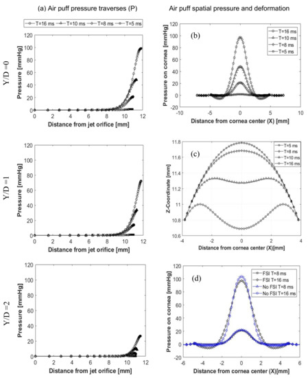- Montanino, A.; Angelillo, M.; Pandolfi, A. A 3D fluid-solid interaction model of the air puff test in the human cornea. J. Mech. Behav. Biomed. Mater. 2019, 94, 22–31. [Google Scholar] [CrossRef] [PubMed]