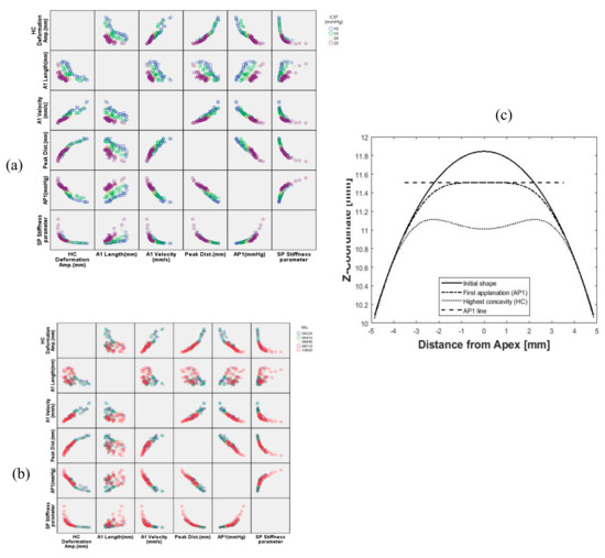 - Ariza-Gracia, M.; Zurita, J.F.; Piñero, D.P.; Rodriguez-Matas, J.F.; Calvo, B. Coupled biomechanical response of the cornea assessed by non-contact tonometry. A simulation study. PLoS ONE 2015, 10, e0121486. [Google Scholar] [CrossRef]