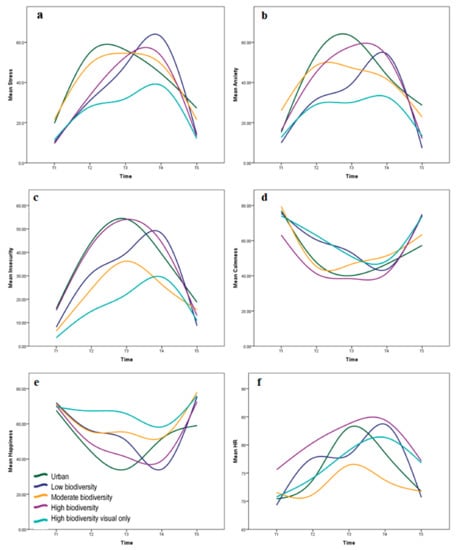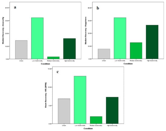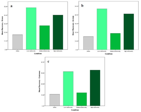 3.3. Does Stress Recovery Differ Amongst IVEs Representing Ordinal Levels of Biodiversity?