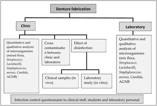 - Williams, D.W.; Chamary, N.; Lewis, M.A.O.; Milward, P.J.; McAndrew, R. Microbial contamination of removable prosthodontic appliances from laboratories and impact of clinical storage. Br. Dent. J. 2011, 211, 163–166. [Google Scholar] [CrossRef] [PubMed][Green Version]
