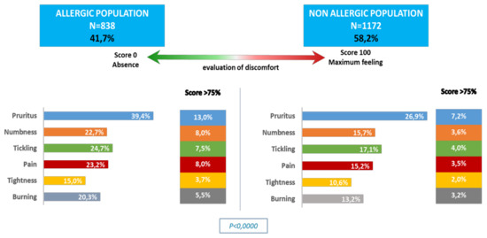 3.2. Allergic Population Versus Non-Allergic Population