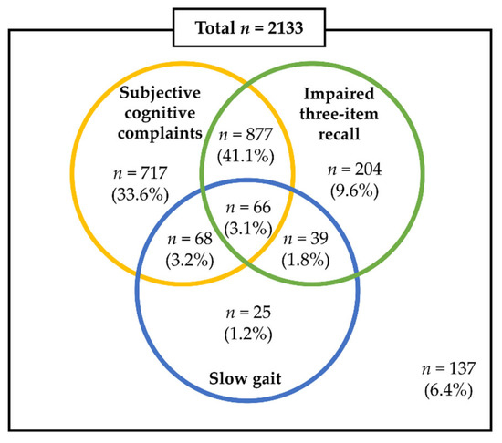 Of the total of 2133 older adults in this cohort study, 105 (4.9%) met the newly developed MCR criteria using 3IR, of whom 55.6% had impaired 3IR and 9.2% had SG (Figure 2). Of the participants, 134 (6.3%) had MCR defined conventionally using SCCs, and SCCs were present in 81.0% of the all participants. A total of 943 participants (44.2%) had both impaired 3IR and SCCs.