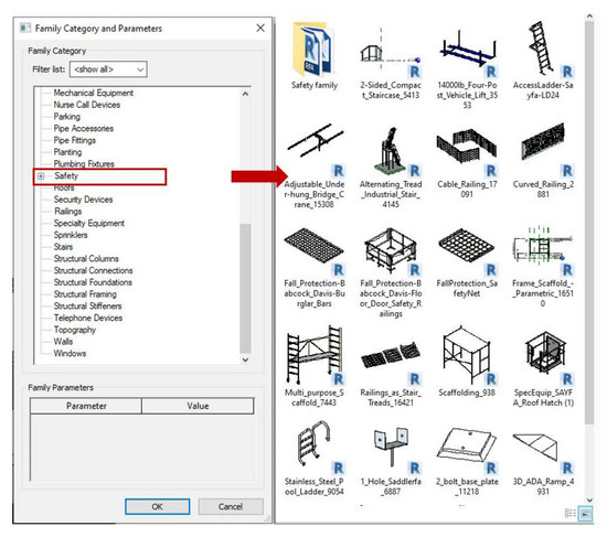 Certain research has underlined the importance of identifying the cause of accidents and determining their role to prevent accidents from happening. Betsis [14] highlighted correlations among various accident characteristics with causes and construction stages. Recent studies showed that fall-related hazards were major concerns [15,16,17], and most construction accidents and fatalities were in relation to small or medium firms [14]. Arboleda and Abraham [11] analyzed the causes of accidents to find the major relationships between the types of accident models and behavioral causes resulting in trenching fatalities. Many studies have focused on analyzing hazards based on the severity of incidents, their frequency, and risk distribution [16,18]; however, the investigations provided only the relevant information without discussing a practical application for safety planning purposes. For example, Memarian and Mitropoulos [19] pinpointed the contribution of masonry activities to accidents and identified high-risk activities. The results indicated that the majority of incidents in masonry work occur during block laying; the study also provided recommendations for reducing such incidents. Nevertheless, the practical applicability of these results to safety planning is not discussed. Besides, the practical approaches that are currently available do not focus on a method to integrate accident data into the BIM by schedule timeline. Kim et al. [20] analyzed work-space conditions associated with safety hazards of scaffolding, which are automatically shared in BIM. In this study, a proposed framework was specialized in scaffolding work, it was combined with a safety checking program. Another research by Kim et al. [21] automated decision making for choosing appropriate temporary structures designated for scaffolding work; however, the study did not include sufficient safety planning that enables the use of various safety facilities in the entire construction process. Hence, efforts are needed to investigate the feasibility of integrating safety measures by incorporating advanced technologies into adequate safety planning processes, which adopt a simple approach to encourage widespread use (easy to use, update, and modify) and allow the automatic selection of temporary safety measures for a specific working condition.
