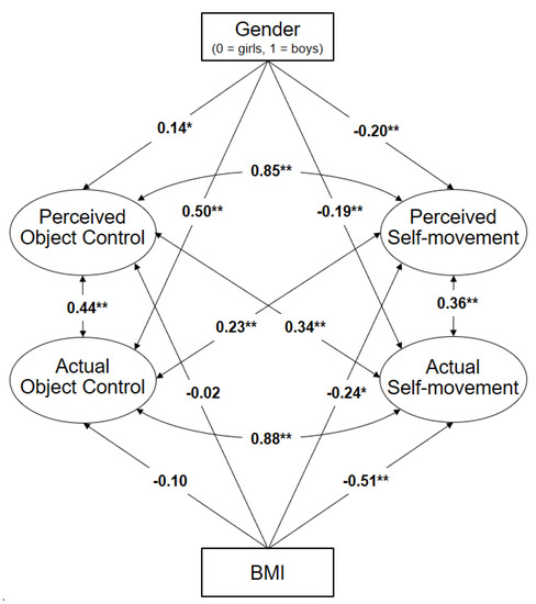 3.1. Structural Model of the Relationship between Actual and Perceived Motor Competence