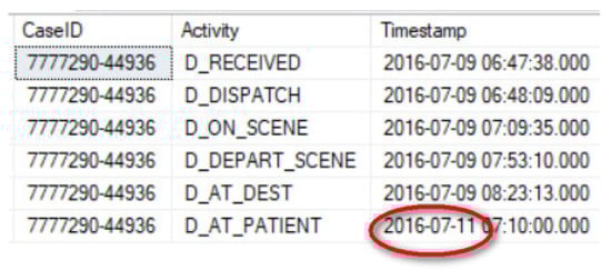 - Andrews, R.; Wynn, M.T.; Vallmuur, K.; Ter Hofstede, A.H.; Bosley, E.; Elcock, M.; Rashford, S. Leveraging Data Quality to Better Prepare for Process Mining: An Approach Illustrated Through Analysing Road Trauma Pre-Hospital Retrieval and Transport Processes in Queensland. Int. J. Environ. Res. Public Health 2019, 16, 1138. [Google Scholar] [CrossRef] [PubMed]
