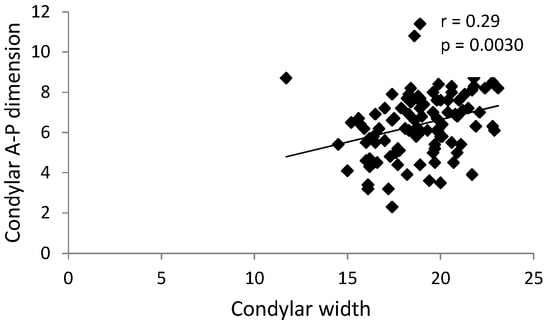 The condylar width was a maximum mediolateral width measured in the axial view [].