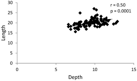 Graph presenting statistically significant positive correlation between the glenoid fossa depth and length in the group with TMJ reciprocal clicking.