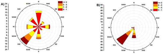The wind rose for MSR for (A) Exceeded pollution, (B) Acceptable pollution.
