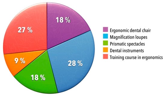 Musculoskeletal diseases and pain (MSDs) show a high prevalence among dental professionals. Our last systematic review yielded an overall pooled annual prevalence of 78 percent. MSDs were most common in the neck (58.5%), lower back (56.4%), shoulder (43.1%) and upper back (41.1%) [1]. Often, MSDs are described as a group of diseases and complaints that have impacts on various structures of the musculoskeletal system of humans. These comprise, for example, joints, muscles, bones, nerves, blood vessels, ligaments, tendons, and supporting structures like intervertebral discs [2,3,4]. MSDs can arise from one or several injuries and result in pain or sensory disturbances in several body regions. They can become a temporary or chronic illness—The latter is more common, representing 40% of all chronic diseases [3,4]. Several studies have found that MSDs often lead to a growing inability to work, sick leave, a poorer quality of work, decreased job satisfaction, work-related accidents, and premature leaving of the occupation [2,3,5,6]. Furthermore, MSDs can cause high health care expenditures for the medical treatments of the diseased. The health and economic burdens of MSDs are considerable [6].