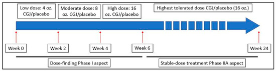 Timeline for the execution of the dose-finding and stable-dose treatment phases. CGJ—Concord Grape Juice.