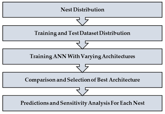 While researchers have reported the use of parametric and non-parametric statistical models in analyzing mode choice patterns of university students, the use of artificial intelligence in full scale from this perspective is infrequent. Akar et al. [18] used a discrete choice model to analyze the mode choice of pupils at Ohio State University, while few others have used multinomial logistic regression, nested logit models, and tree-based models in their analyses [16,28,29,30,31]. Bicikova [32] used a two-step cluster analysis to segment and profile British students’ travel based on their motivational and behavioral characteristics. Ermagun et al. [33] used a data-mining method, a random forest method, and an econometric (nested logit) approach to perform a comparative analysis to identify a connection between mode choice and escorting decisions for school trips. They estimated that the random forest method’s prediction potential was almost double that of the nested logit model. In another study, Daisy et al. [22] used zero-inflated negative binomial (ZINB) models to identify the relationship between university students’ tenure of housing and choice of sustainable transport. Assi et al. [34] reported the use of three machine learning tools (MLT), namely extreme learning machine (ELM), support vector machine (SVM), and multi-layer perception neural network (MLP-NN), to predict school pupil mode choice to school. One major drawback of this study is that it had only a binary output (i.e., students either choose to travel by car or to walk). However, the successful implementation of MLTs, as suggested by the results of this study, is taken as a motivation to use MLTs for university goers’ mode choice with more input variables in this study. Each model has its own set of advantages over others and is also used based on the type of problems presented. For example, in discrete choice models, the number of alternatives is confined. However, in the ordinary regression model, the dependent variable can take an infinite number of values. Multinomial logit (ML) relies on the assumption of independence of irrelevant alternatives (IIA), which is not always desirable. For example, in the ML model the relative probabilities of taking a car or bus to university do not change if a bicycle or other mode of transportation is added as an additional possibility. Thus, often times ML models impose too many constraints on the relative preferences between the different alternatives. Nested logit or the multinomial probit model could be used to solve this problem, as they allow for violation of the IIA. With all these compulsions in mind we found that the juxtaposed use of MLTs along with nested ensemble has not been successfully used for mode choice problems in literature, which has resulted in its non-utilization in mode choice problems with a pool of similar choices. Hence, this study attempts to fill this gap.