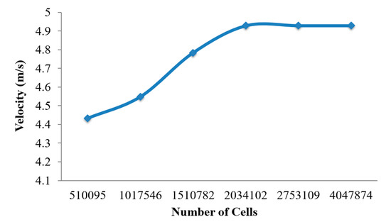 Mesh independence test results for a different number of cells.