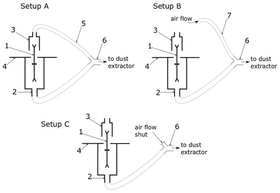 | Dust Extraction Connector | Setup A | Setup B | Setup C |