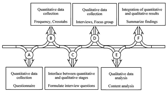 This study employed a mixed-method approach to investigate the blockages that prevent the flow of the adaptation process in different regions of the UK. It chose to focus on homeowners and private tenants instead of public sector tenants, as these two groups account for the majority of households in the UK and most of them have little knowledge about where to seek help for adaptations. A sequential explanatory strategy was adopted, in which the quantitative and qualitative processes come in two consecutive phases with six steps (Figure 1). The first phase used a survey which was designed to understand how local authorities organize and manage their adaptation services. The second phase included interviews and a stakeholder one focus group, involving social workers, occupational therapists (OTs), housing officers, staff from other agencies and older service users. The aim of the second phase was to explore different perspectives on the statistical results in more depth. Interviewees were selected from survey respondents and interview questions were formulated based on an analysis of survey results. Findings from the two phases were finally integrated to form a comprehensive insight on the current practice of housing adaptation in the UK.