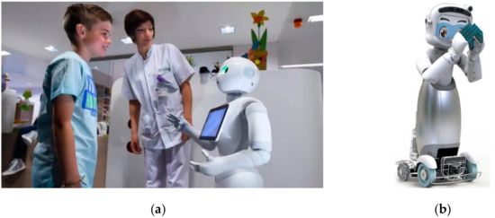 - France-Presse, A. Robot Receptionists Introduced at Hospitals in Belgium. The Guardian. Available online: https://www.theguardian.com/technology/2016/jun/14/robot-receptionists-hospitals-belgium-pepper-humanoid (accessed on 17 March 2020).