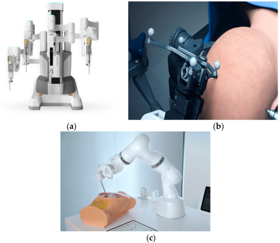 Specialized robots for general, spine and cranial biopsy and surgery. (a) Revo-i surgical robot [62]. (b) STEALTH AUTOGUIDE: Cranial Robotic Guidance Platform [63]. (c) KUKA LBR Med surgical robot [64].