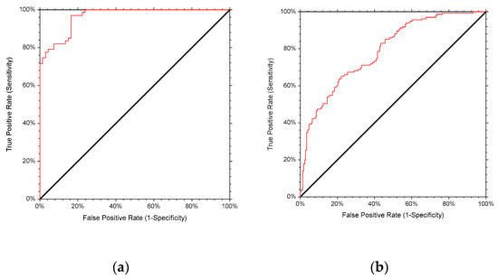 - Mandrekar, J.N. Receiver operating characteristic curve in diagnostic test assessment. J. Thorac. Oncol. 2010, 5, 1315–1316. [Google Scholar] [CrossRef]