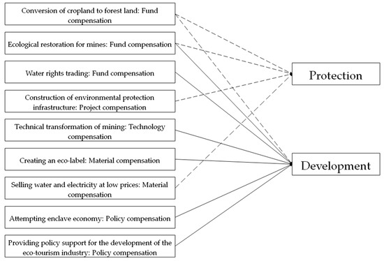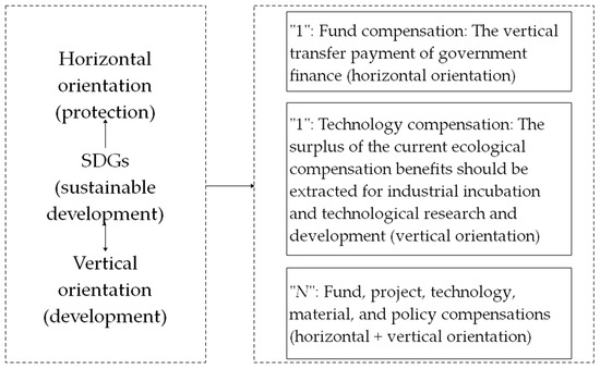 The United Nations put forward 17 sustainable development goals (SDGs) in September 2015, which aim to mobilize global efforts to end poverty, foster peace, safeguard the rights and dignity of all people, and protect the planet [1]. The SDGs call for deep transformations in every country, that will require complementary actions by governments, civil society, scientific research institutions and enterprises. Sachs proposed a plan for implementing the SDGs, and identified six integrated transformations to achieve all the SDGs [2]. In transformation 4, which is broadly focused on sustainable land use and agricultural systems, achieving the sustainable management and efficient use of natural resources by 2030 is the content of SDGs [3,4]. Planet and partnership are two keywords of SDGs, which means that it is not only necessary to establish a self-enforcing win-win partnership between human and nature, but also between stakeholders [5]. However, as suggested in TWI2050 Report [6] and Global Sustainable Development Report 2019 [7], vested interests, regulatory capture and other factors are challenges and obstacles to implementing transformations and SDGs. According to the current major assessment reports on the progress of sustainable development [8,9,10,11], the SDGs related to ecological environment in various countries are generally poor. The scores of goals 1, 3, 6, 10, 12, 13, 15, 16 and 17 are generally low, the research progress is slow, and the evaluation results of these indicators are far from the requirements of sustainable development, which is the key constraint for most countries, especially developing countries, to achieve the SDGs. The reason is that the ecological environment protection mainly depends on the government’s passive promotion, but lacks the mechanism of the whole society’s active response. Compensation strategies have already been proposed as a solution to overcome these problems, so the compensation problem must be considered firstly, to build the better frameworks for partnerships among winners, losers, and orchestrator. In addition to implementing new governance policies, vested interests should also be incentivized to align their actions with compensation [12].