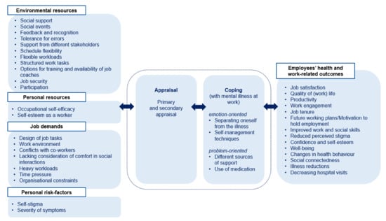 - Alverson, M.; Becker, D.R.; Drake, R.E. An ethnographic study of coping strategies used by people with severe mental illness participating in supported employment. Psychiatr. Rehabil. J. 1995, 18, 115–128. [Google Scholar] [CrossRef]