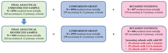 3.3. Students who Experienced Grade Retention and Repetition and the Comparison Group