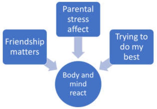 One theme—“Body and mind react”—and three subthemes: (1) Friendships matters, (2) Parental stress affect, and (3) Trying to do my best were identified.
