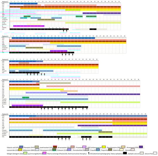 - Trinka, E.; Leitinger, M. Which EEG patterns in coma are non-convulsive status epilepticus? Epilepsy Behav. 2015, 49, 203–222. [Google Scholar] [CrossRef]