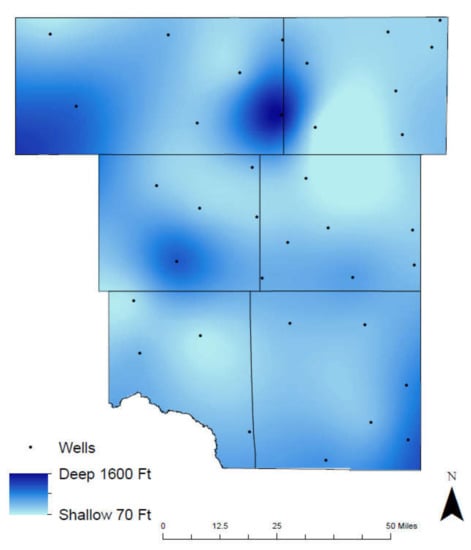 Groundwater well depth in the study area.