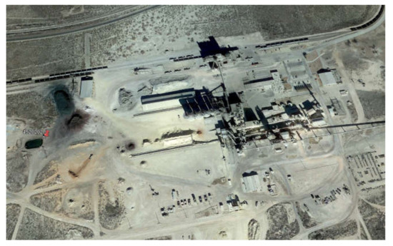 While fluoride concentrations have remained relatively consistent throughout the study area, one well (ID: 4520202) within southwest Ector County accounts for the highest accumulation of fluorides. Concentration limits have remained relatively consistent from 8.27 mg/L in 1992–2005 and 8.55 mg/L in 2006–2019, well above the MCL of 4.0 MG/L. Located at the site of this well is a cement production facility (Figure 8). Fluorspar (calcium fluoride) is a common mineralizing agent in the manufacturing of cement [33]. In the oilfield, casing cement is used to isolate oil, gas, and water zones from the wellbore while also bonding the casing to the wall. Runoff and infiltration from the production of these materials has resulted in the elevated readings observed. Furthermore, this well passes through the confined Dockum aquifer, where groundwater has an increased residence time and natural attenuation of the contaminant is lower.